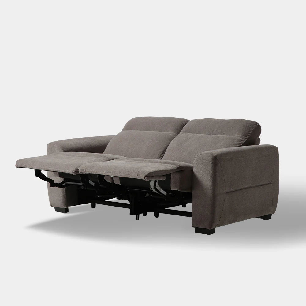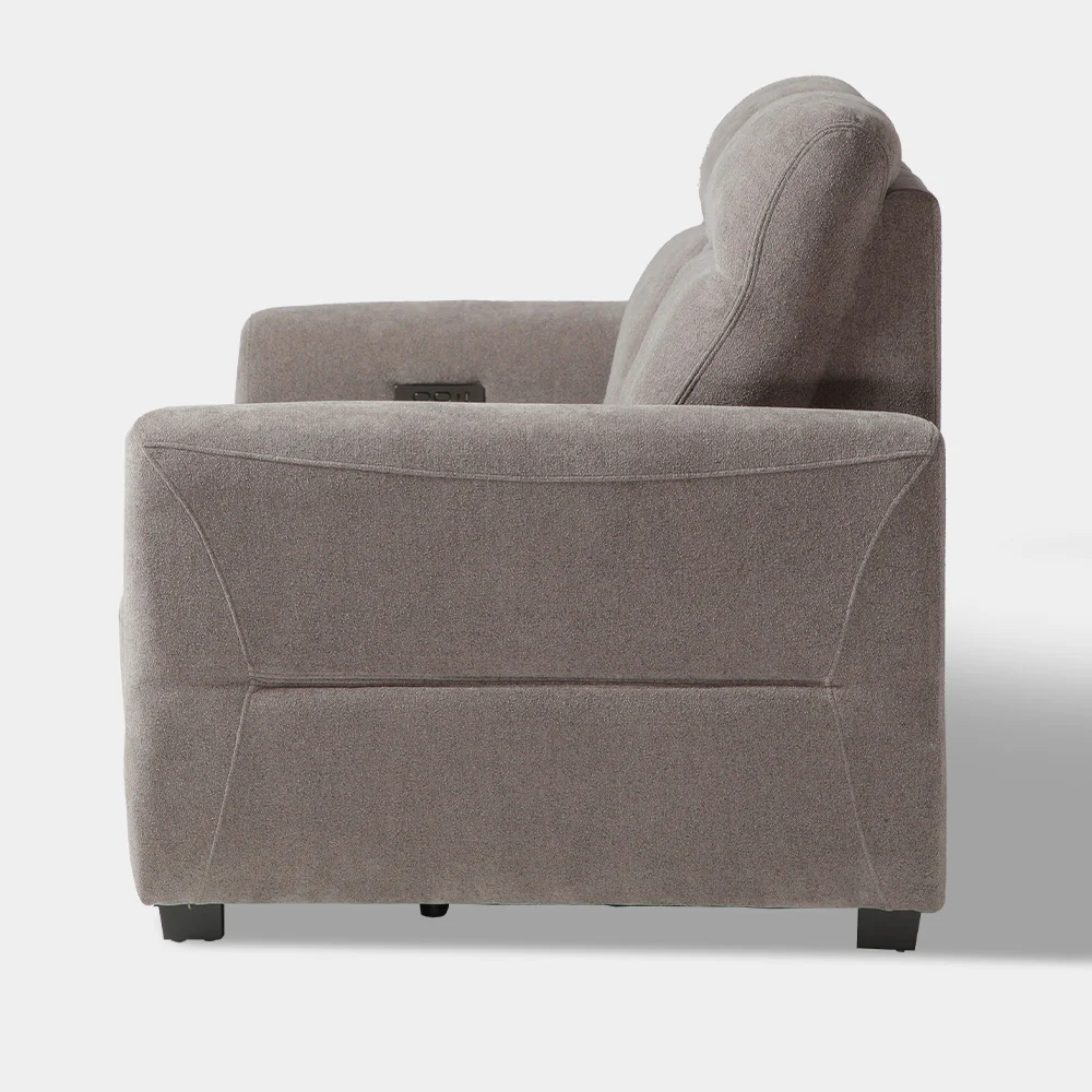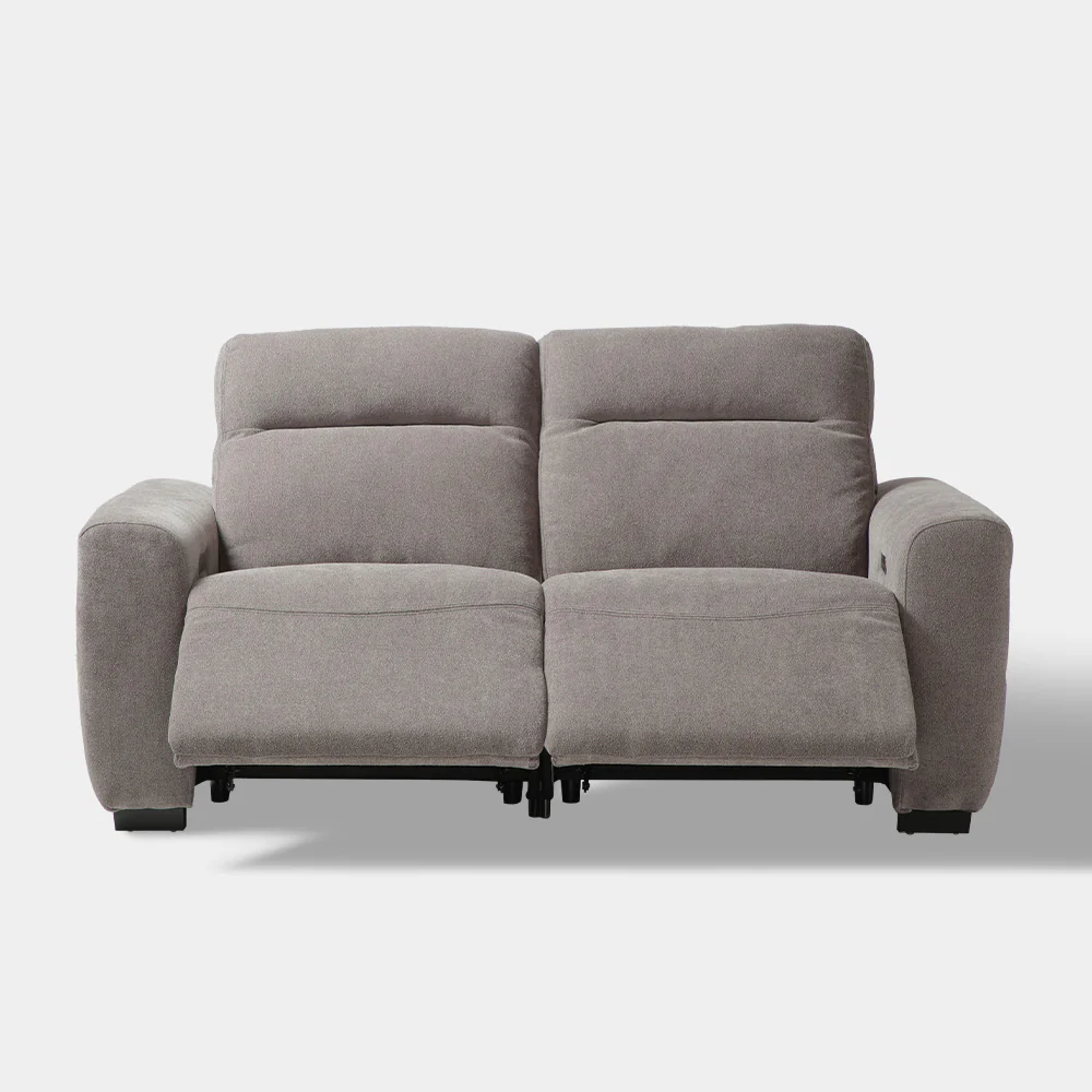 A Modern Contemporary Power Back and Foot Rest Recliner, soft touch control in inner arm rest. Seat made of wood and spring upholstered in fabric with soft line tuft inback rest and outer side arm low arm rest. Size: 2s L204xW101xH100xSH50xSD57 cm