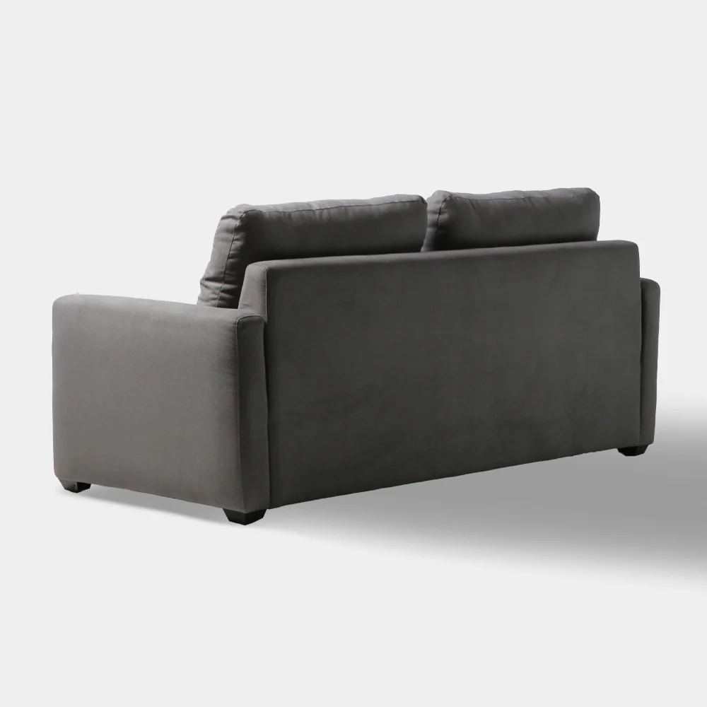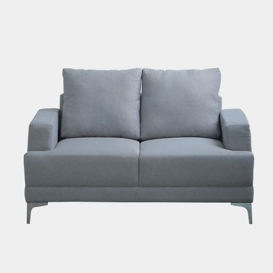 A Modern Contemporary style sectional sofa, made from solid kiln dried gmelina wood, padded in polyurethane foam and upholstered in chennile textured fabric, with black powder coated steel legs. L182.88XW91.44X H86.36 cm