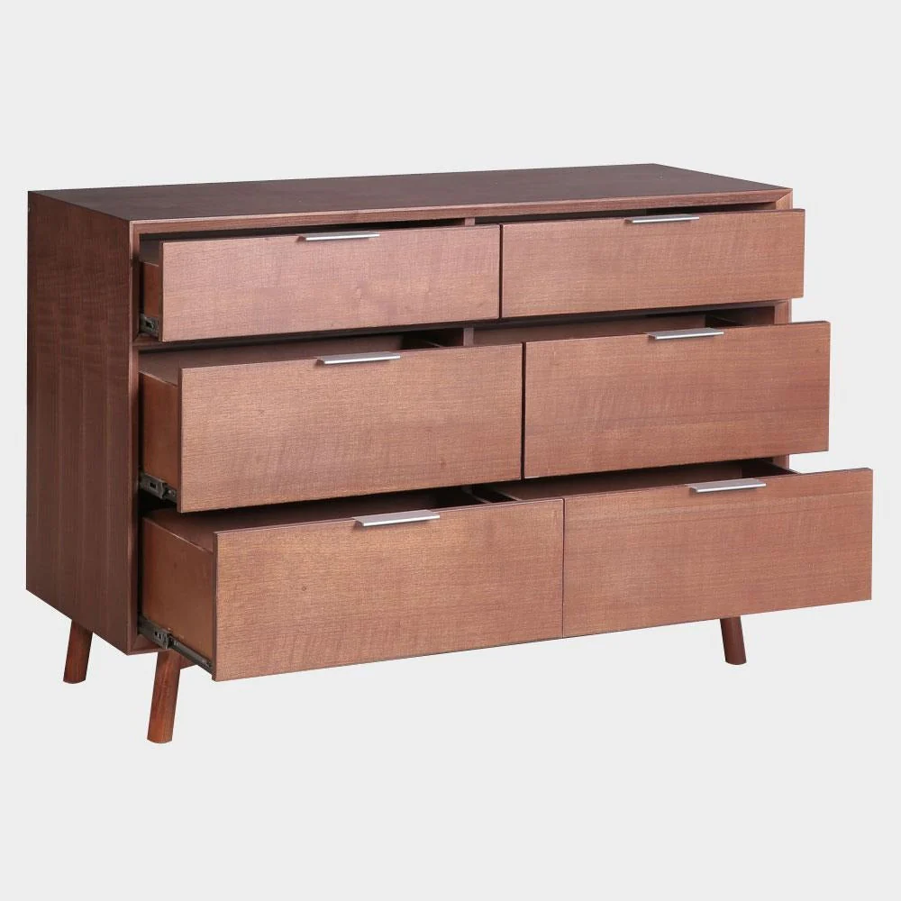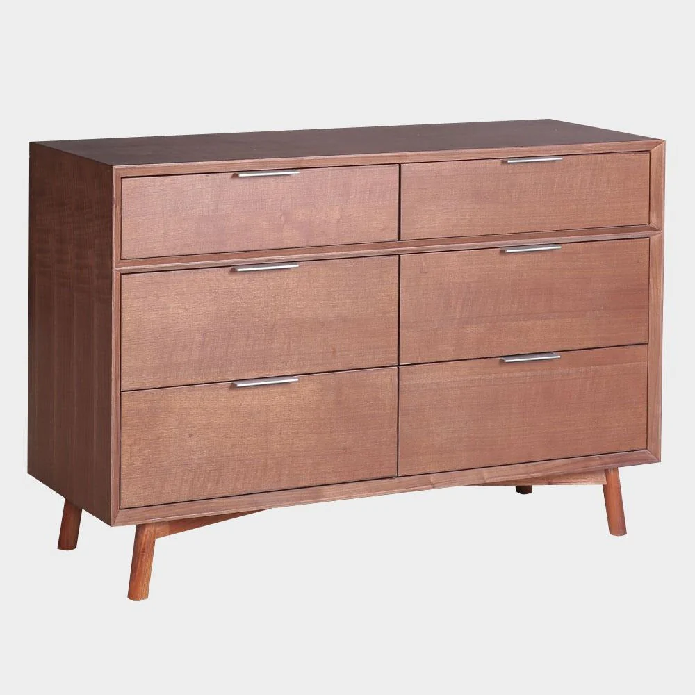 A Classic bedside table with six sliding drawers, mitered front edges and splayed legs in solid mahogany wood and MDF. Size: L120xW46xH82 cm Weight capacity: 75 kg