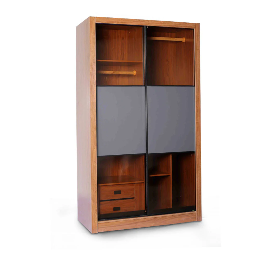 A Modern Contemporary style sliding wardrobe with glass door and 2 drawers. Size: L120xW58xH210 cm